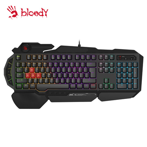 A4Tech Bloody B310N คีย์บอร์ดสำหรับเล่นเกมขนาดเต็มเชื่อมต่อผ่าน USB 104ปุ่มแล็ปท็อปใหม่ไฟนีออนเรืองแสง LED backlit Effect เมมเบรน